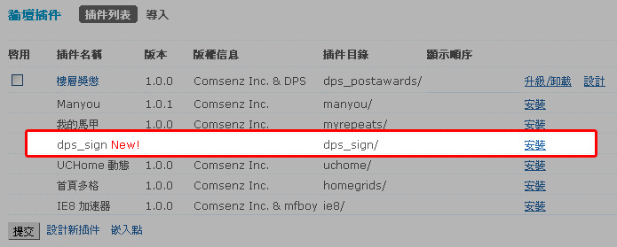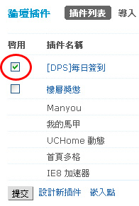 安裝完成後,記得打勾啟用後提交,插件才能運作。
