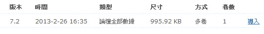 STEP3.在要還原的數據庫紀錄後方按下導入,即可還 原該日數據