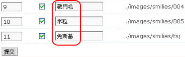 例如您想要兔斯基的表情符號,在 ./iamges/smilies/tsj 的表情分類欄位填上"兔斯基"