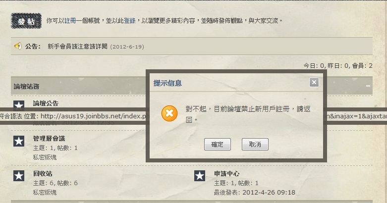 按入『你可以註冊一個帳號』,會出現:對不起,目前論壇禁止新用戶註冊,請返回。