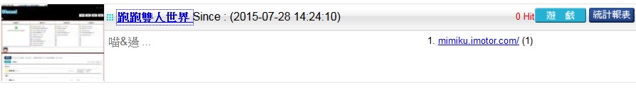 | 1.論壇名稱: 跑跑雙人世界 Since : (2015-07-28 14:24:10) |
