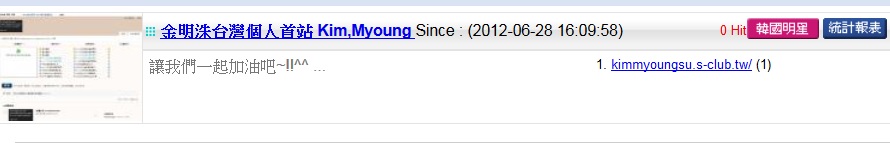 | 1.論壇名稱: 金明洙台灣個人首站 Kim,Myoung Since : (2012-06-28 16:09:58) |