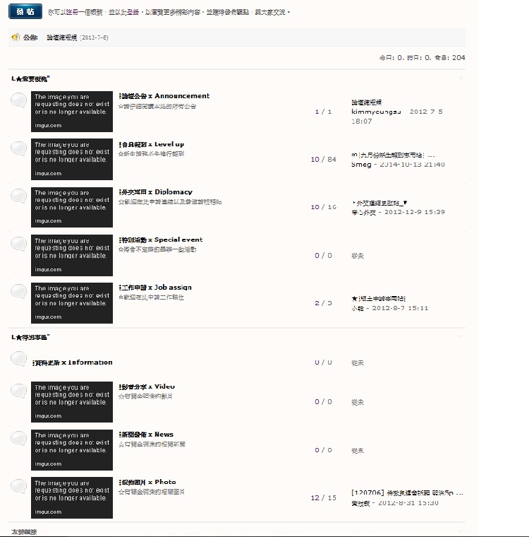 自2012年6月至今,論壇仍是閒置,大部分分區也沒有文章